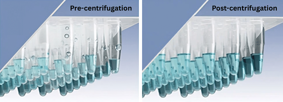 - Quickly spins down droplets and condensation